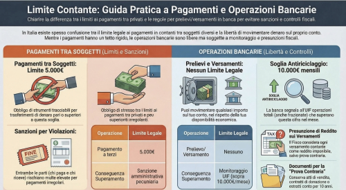 Tuttavia, la normativa antiriciclaggio prevede che operazioni in contanti superiori a 10.000 euro nell’arco di un mese solare attivino l’obbligo per la banca di comunicare l’operazione all’Unità di Informazione Finanziaria (UIF). Questa comunicazione non è una sanzione, ma un adempimento previsto dal Provvedimento UIF del 28 marzo 2019.