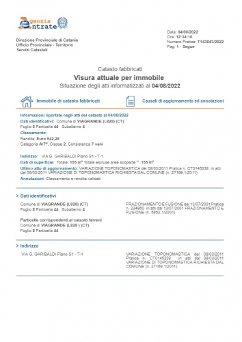 La consultazione dei dati disponibili solo in formato cartaceo è possibile unicamente presso l’Ufficio provinciale - Territorio competente.